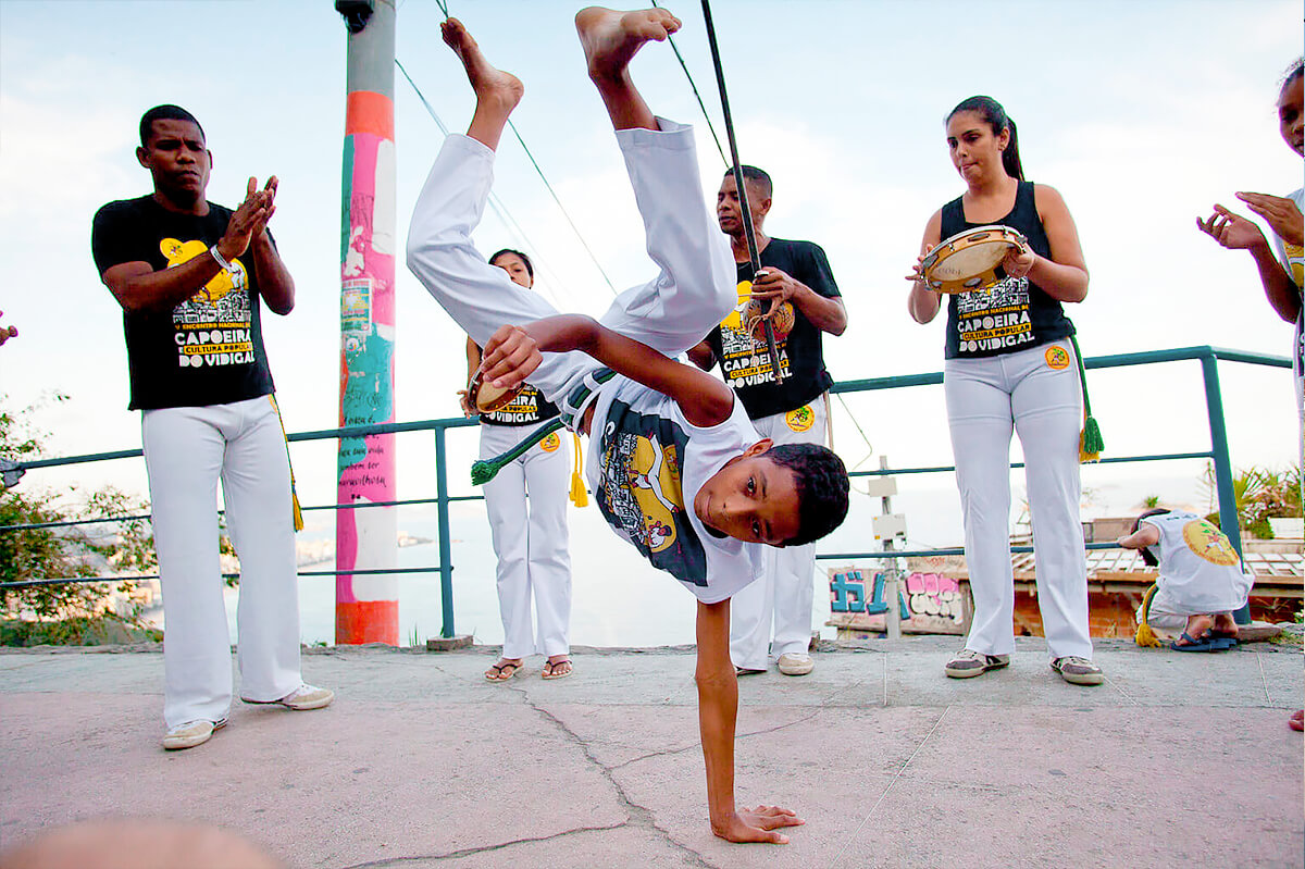 Depois iremos até a Associação de Moradores do Vidigal para conhecer o Projeto Capoeira Vidigal, que oferece aulas de capoeira gratuitas, com o objetivo de promover a cultura afro-brasileira e de trazer atividades extra curriculares às crianças da comunidade.